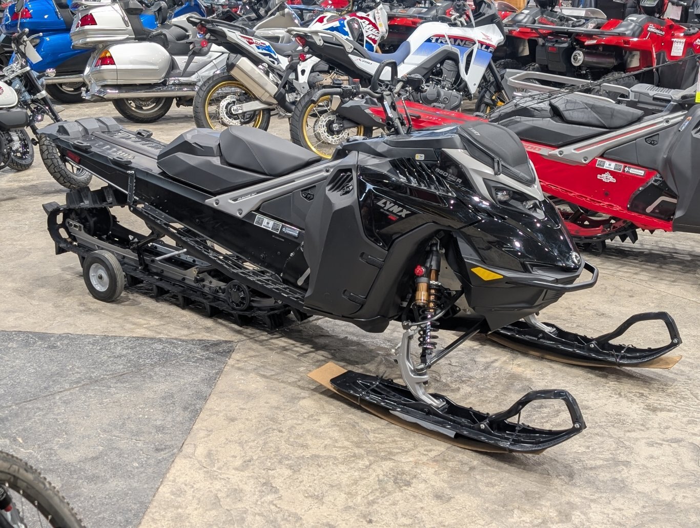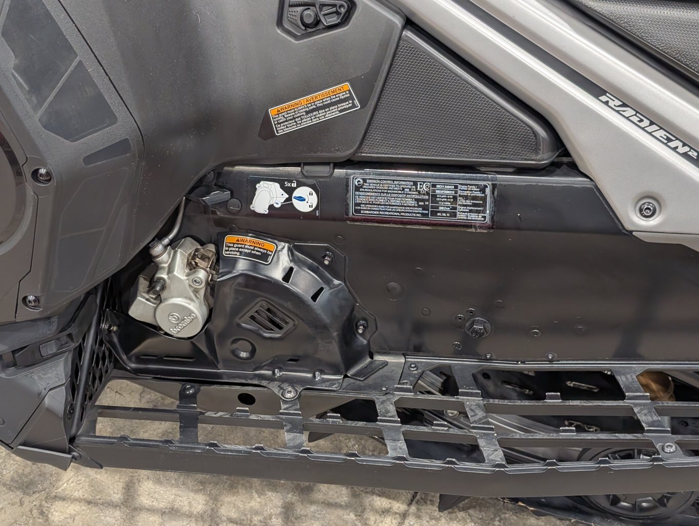 381 mm wide track, featured in all Shredder models, provides agility in deep snow. Full-width rods add stability and prevent wash-outs when sidehilling due to refract of the edge of the track. |